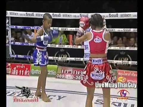 Petjeeja Or Meekhun (red) shows why shes the most badass little girl on the planet vs a boy named Kaoponglek Sitmahesak (blue). From Aswindam Stadium, Bangko...